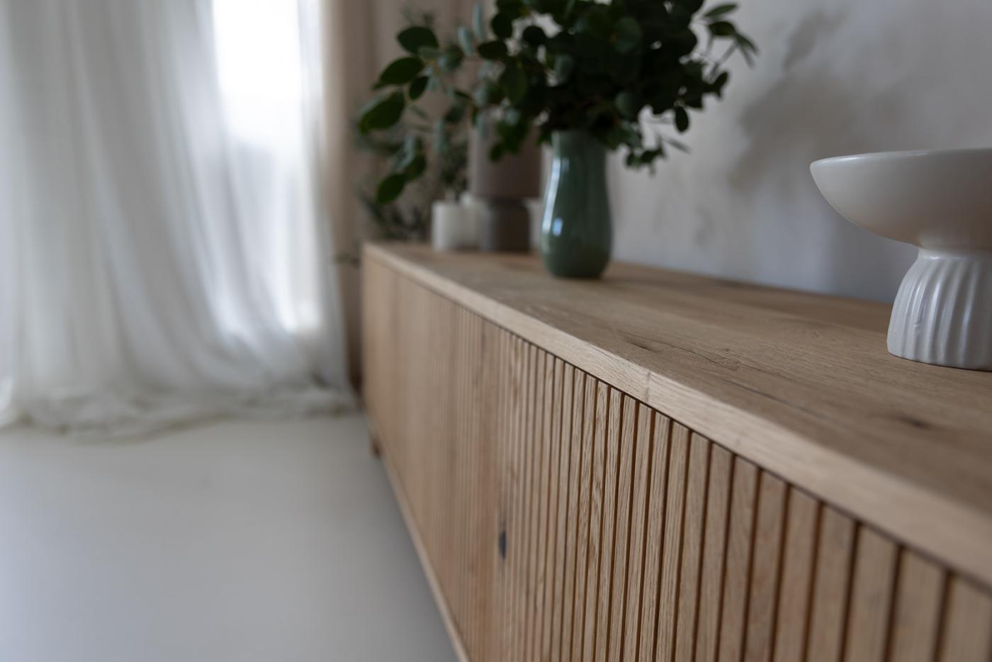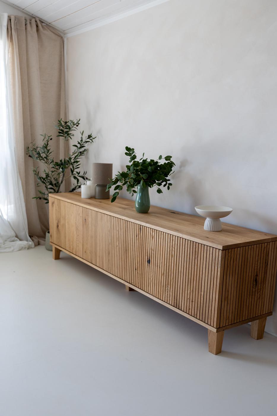 Elegantní dubová komoda MOLIENDA – spojení přírodního luxusu a praktického úložného prostoru pro váš obývací pokoj.