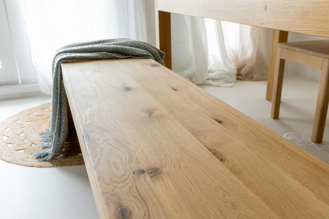 Dubová lavice LINE vytvořená v minimalistickém duchu Vás okouzlí jednoduchou linií a nadčasovostí. Vyrábíme ji v několika délkách a barevných odstínech, povrch je lehce kartáčovaný pro zdůraznění překrásné kresby dřeva a ošetřený olejovoskem. Dokonalá kombinace s dubovým stolem LINE. Lze kombinovat dle libosti i s ostatními stoly naší výroby. Možné zakoupit i samostatně.