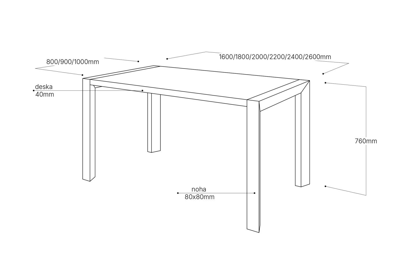 Detailní popis Dubový stůl BEVEL 180 x 90 cm