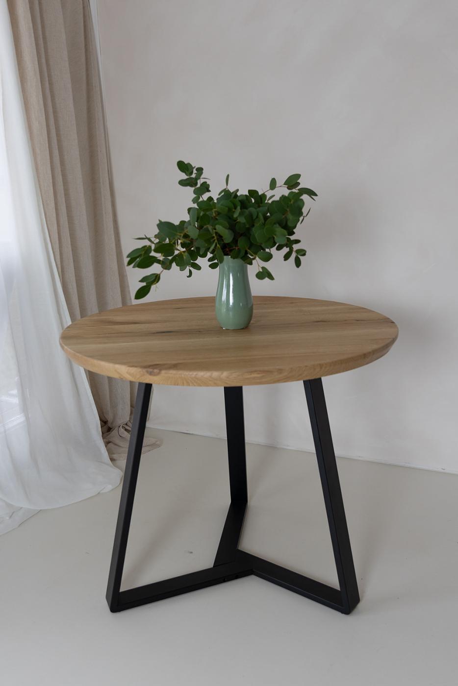 Detailní popis Dubový stůl s kovovou podnoží ROUND 90