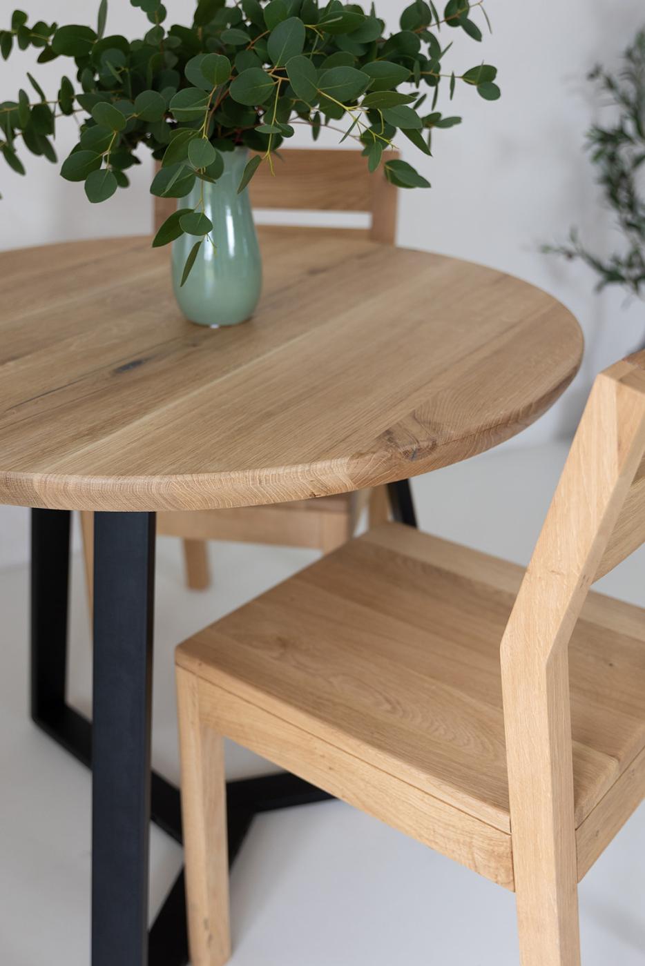 Detailní popis Dubový stůl s kovovou podnoží ROUND 80