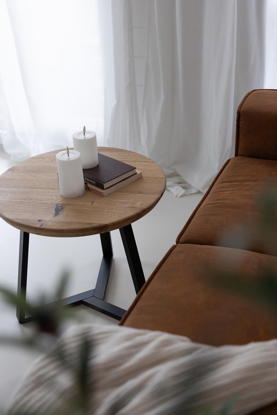 Kulatý konferenční dubový stůl s kovovou podnoží ROUND spojuje moderní kovovou stolovou podnož s kruhovou masivní dubovou deskou. Jemně opracovaná hrany masivní dubové desky přispívají k jeho sofistikovanému vzhledu. Dubový kulatý stůl ROUND propůjčuje prostoru eleganci. Povrch desky stolu je jemně kartáčovaný, aby ještě více vynikla neopakovatelná kresba dřeva.