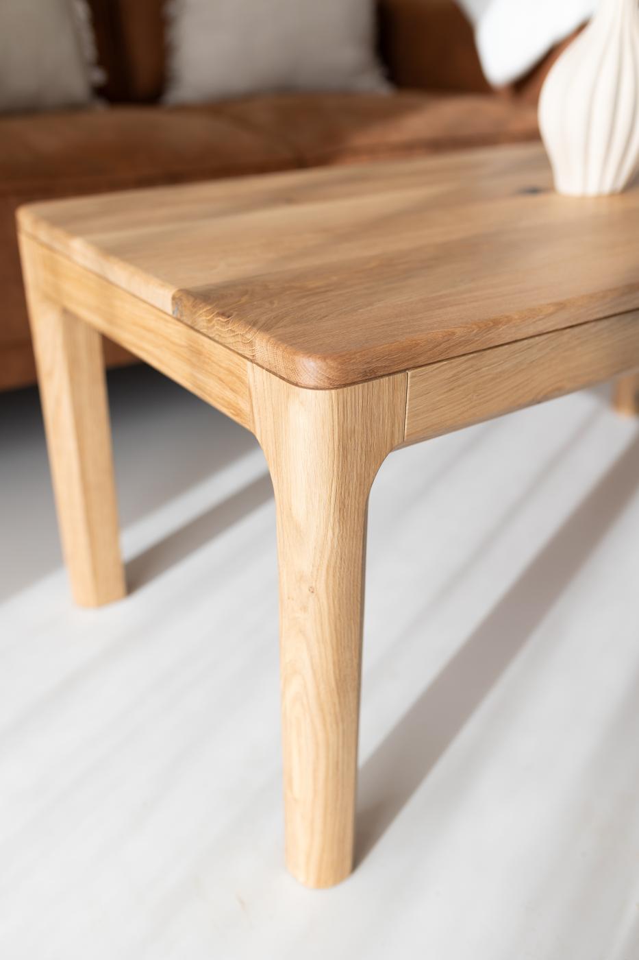 Dubový konferenční stůl RELIEVE je menší brácha jídelního stolu RELIEVE, jehož největší předností je elegance a propracovanost. Frézované nohy, precizně zaoblené rohy, stolová deska bez přesahu to vše propůjčuje tomuto konferenčnímu stolu nadčasový a sofistikovaný vzhled.